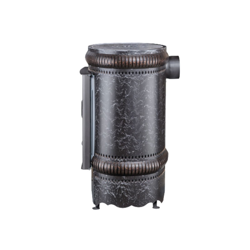 Топка выполнена из жаростойкой нержавеющей стали AISI 439 толщиной 3 мм. Декоративный кожух тоже стальной, украшен узором, вырезанным лазером. В конструкции печи применена технология подового горения. Благодаря отсутствию колосника заложенные дрова сгорают полностью. Золы остается мало, чистить топку после каждого использования не требуется.