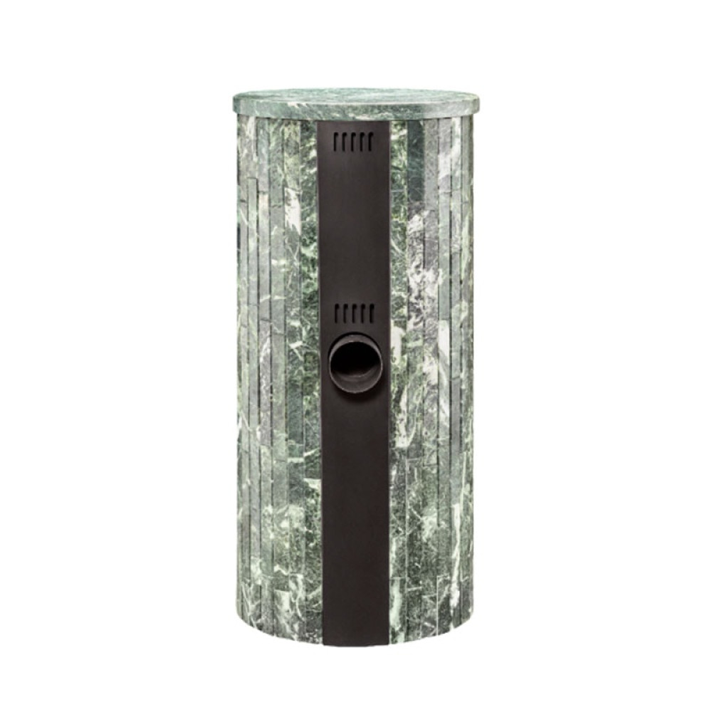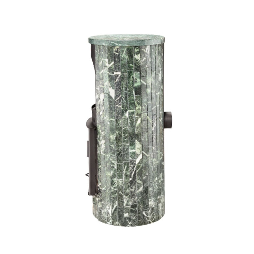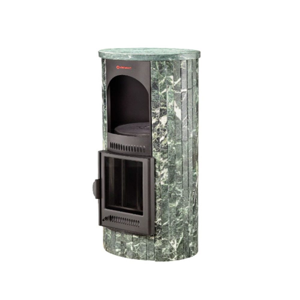 Для облицовки топки заказчик может выбрать натуральный змеевик, жадеит, "окаменевшее дерево" и мрамор. Негорючий облицовочный материал повышает безопасность оборудования, камень аккумулирует тепло и продолжает отдавать его воздуху, когда огонь в топке погас. Еще одно достоинство облицовки – уникальный узор. Рисунок на камне никогда не повторяется дважды.