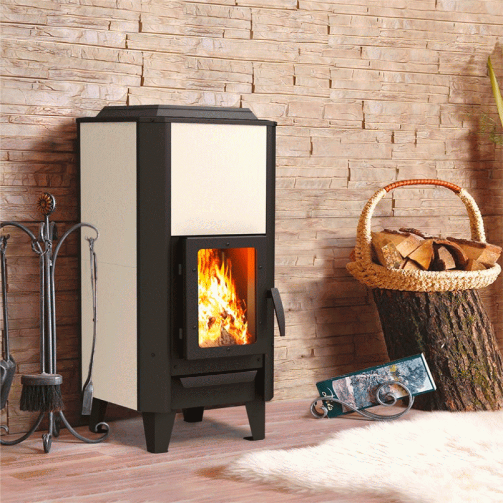 Модель Вертикаль Керамика Теплодар; создана специально для обогрева дач, коттеджей и даже гаражей в холодное время года.На одной закладке работает до 8 часов, наличие чугунной варочной поверхности и теплоотводов для обогрева соседних помещений, дверца со стеклом. Кожух-конвектор из термостойкой керамической плитки стандартного размера, которую при желании, возможно заменить под Ваш интерьер. Небольшие размеры и масса отопительной печи позволяют с легкостью её демонтировать при её сезонном использовании.