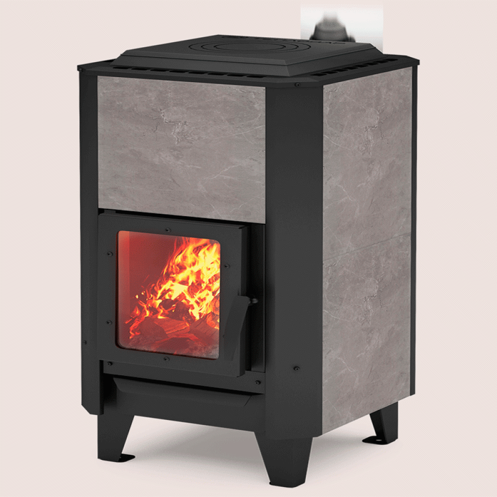 ВЕРТИКАЛЬ Металлика Теплодар;это компактная модель из качественной котловой стали, выполненная в современном стиле. Печь способна быстро протопить комнату площадью до 120 квадратных метров, а за счет каменной облицовки топка долго сохраняет тепло даже при погасших дровах. Прекрасно справится с отоплением смежных помещений — на задней стенке печи размещены специальные теплоотводы.