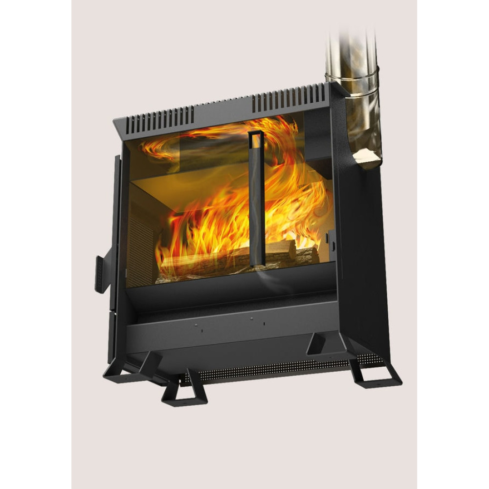 В печи отлично сочетаются надежный современный отопительный прибор и проверенные годами идеи. В печи реализована возможность поддержания тепла в режиме длительного горения — до 8 часов на одной закладке дров. Кожух-конвектор печи обеспечивает быстрый, равномерный нагрев помещения и защиту от жесткого инфракрасного излучения от стенок топки. Небольшие габариты печи в сочетании с особой углубленной конструкцией выхода дымохода дают дополнительную экономию пространства и существенно расширяют возможности при монтаже печи: дымоход можно вывести как назад, так и вверх с помощью колена.