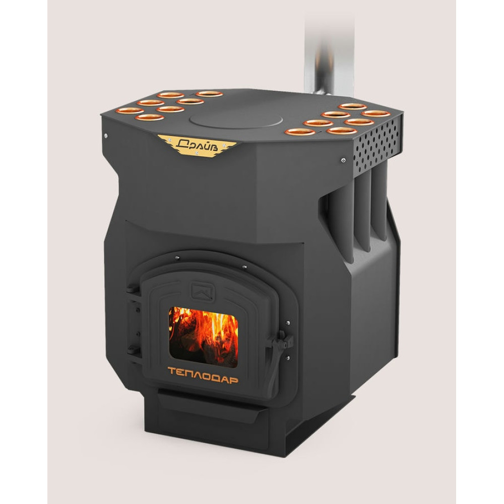 Благодаря современному дизайну, «ТОП-ДРАЙВ» может послужить украшением интерьера. Особенностями этой печи являются небольшие габаритные размеры при высокой динамике прогрева помещения. Используемые при изготовлении материалы обеспечивают надежную работу в течение всего срока службы при соблюдении условий эксплуатации. В топке печи расположены ряды конвективных труб, внутри которых происходит нагрев воздушных потоков и создается мощная циркуляция воздуха, что позволяет быстро распределить нагретый воздух по всему помещению.