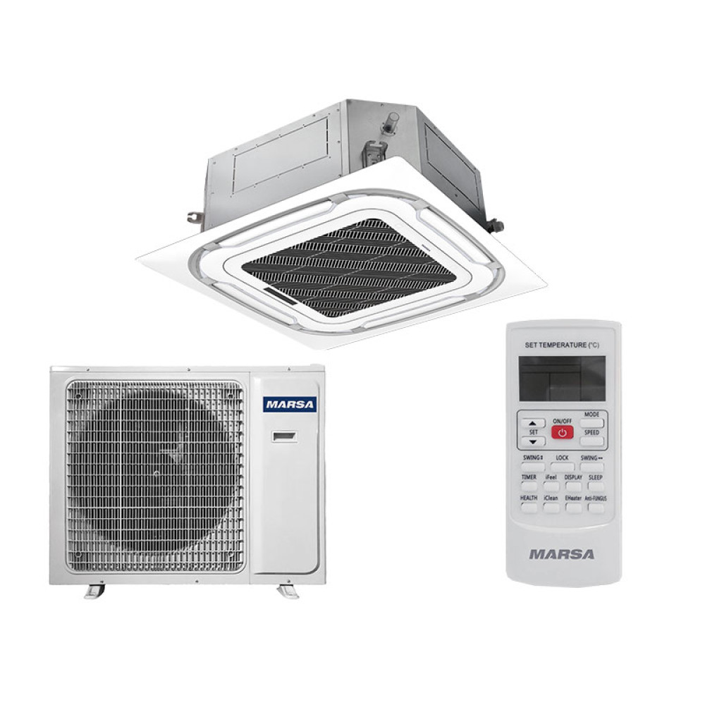 Серия потолочных кондиционеров кассетного типа от китайского бренда Marsa представлена несколькими моделями с различной мощностью. Конструктивное исполнение ассортимента изделий позволяет интегрировать их в помещениях любого типа - от жилых комнат до коммерческих и производственных объектов. Комплект поставки моделей упрощает процесс установки.