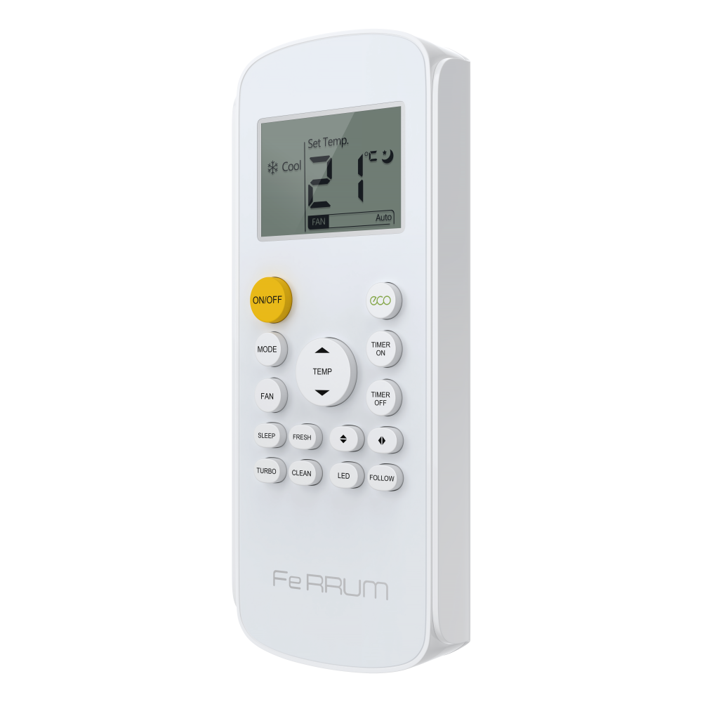 Ferrum (Феррум) Force iFIS09F2С/iFOS09F2С – это модель инверторного настенного кондиционера, рассчитанного на относительно небольшие помещения: площадью до 25 м2. Он оснащен современным пультом ДУ с дисплеем, который обеспечивает точную настройку температуры, скорости, режима, а также положения жалюзи. Все это позволяет создать комфортный микроклимат.