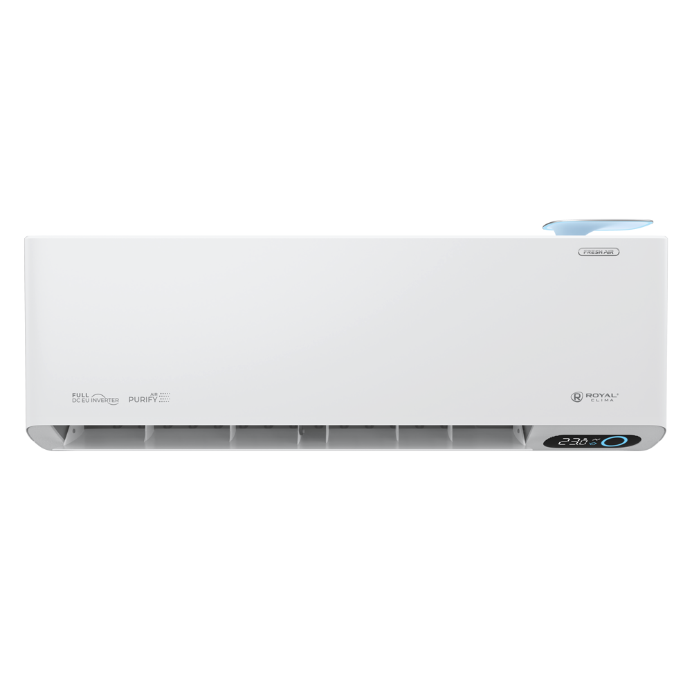 Сплит-системы с функцией притока и очистки свежего воздуха ROYAL FRESH STANDARD позволяют не только охлаждать и нагревать рециркулирующий в помещении воздух, но и насыщать пространство приточным воздухом с улицы, предварительно производя его очистку благодаря высокоэффективному HEPA фильтру. Он задерживает до 95% мельчайших частиц пыли, сажи, пыльцы, спор грибов и других загрязнений размером до 3 мкм.