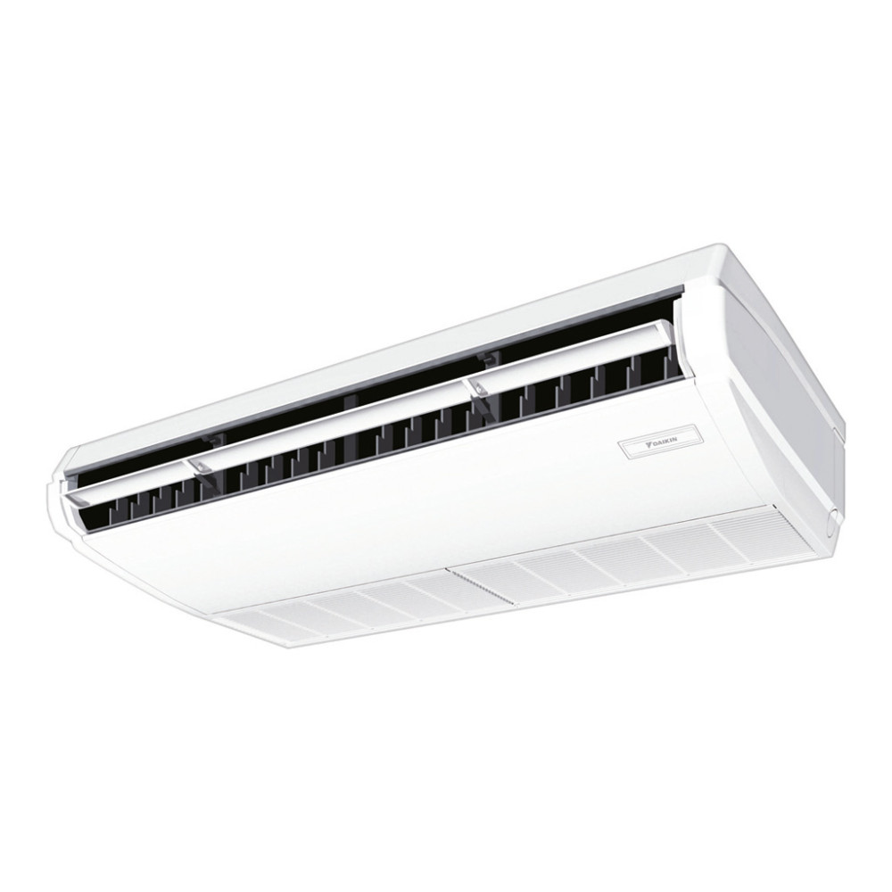 Для обычных потолков высоких помещений подходят подпотолочные сплит-системы Daikin, состоящие из наружных блоков и внутренних, размещаемых под потолком. Большая эффективность и производительность наружных блоков обеспечивает стабильность устанавливаемой температуры в помещении. Преобразована конструкция некоторых частей системы, что дает ей уменьшение потребления энергии.