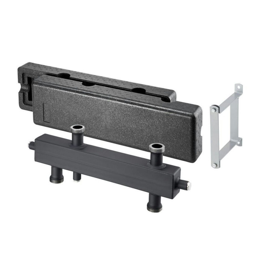 В комплект помимо гидрострелки входят также изоляция и настенный крепёж.