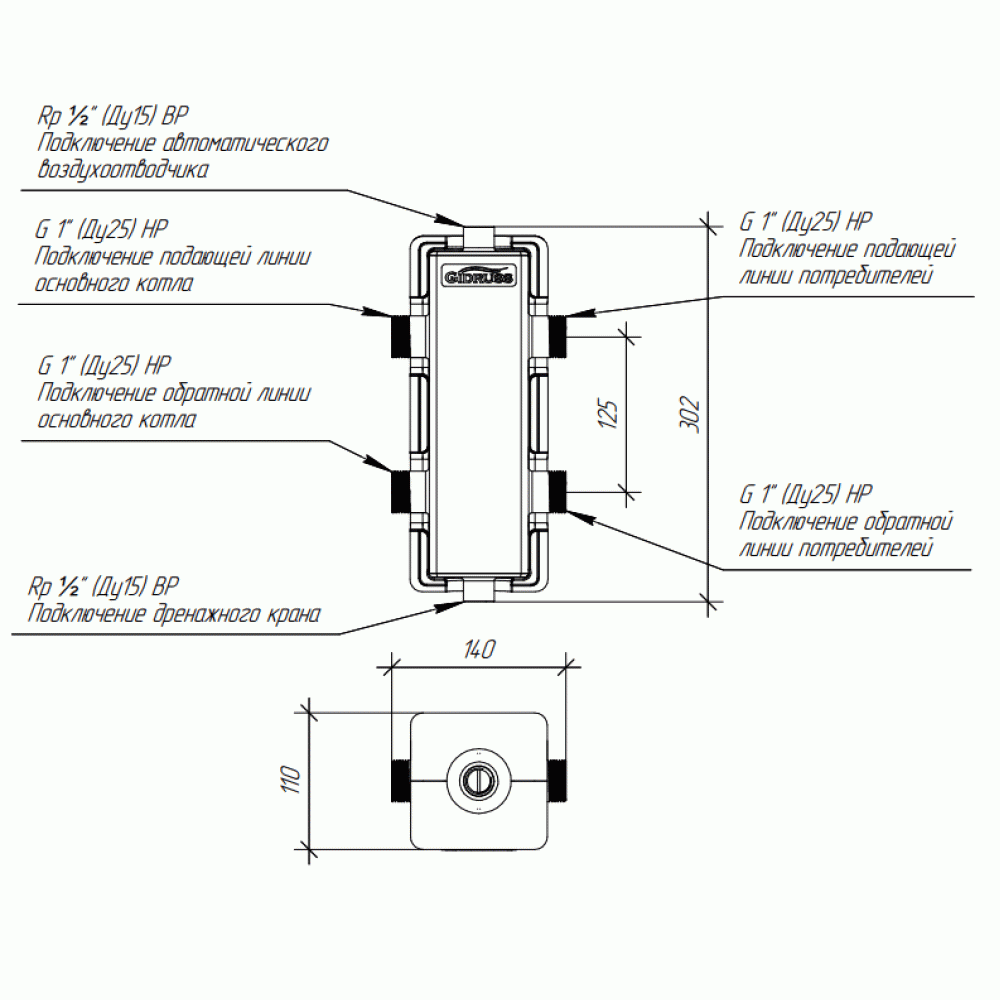 Гидрострелка GR-60-25.EPP необходима в системах отопления до 500 м² для обвязки 1-2 настенных котлов общей мощностью до 60 кВт или одного напольного котла до 50 кВт с внешним насосом.