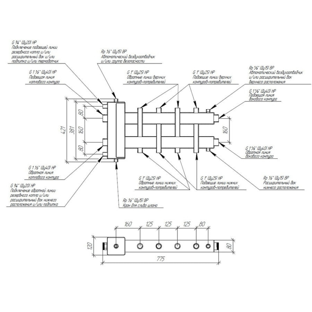 Коллектор Gidruss BM-150-5DU до 150 кВт 1 1/2" 5 контуров