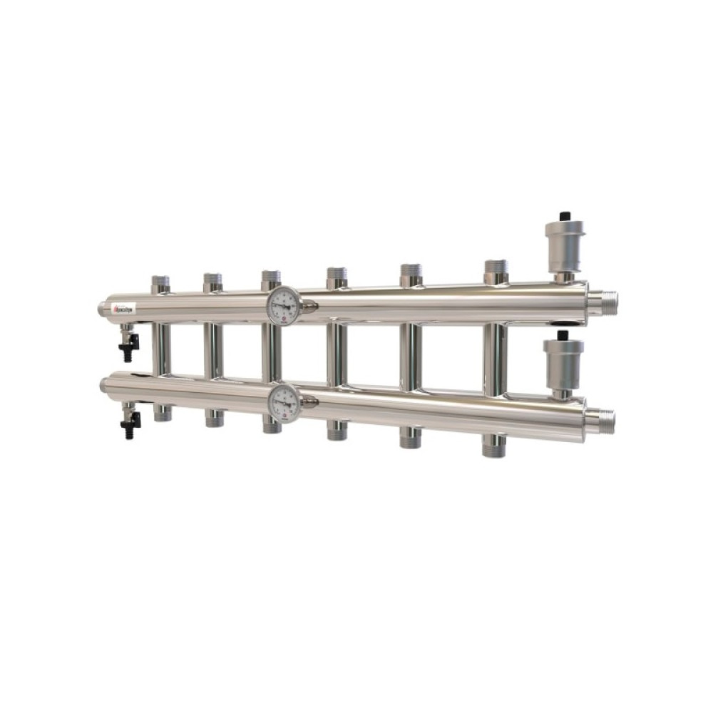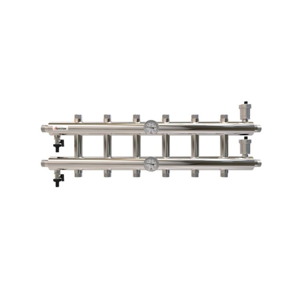 Распределительный коллектор GK 32-7 предназначен для устройства систем отопления с тремя потребителями тепла с различными параметрами расхода и температуры теплоносителя. Состоит из подающего и обратного коллекторов, расположенных друг над другом.