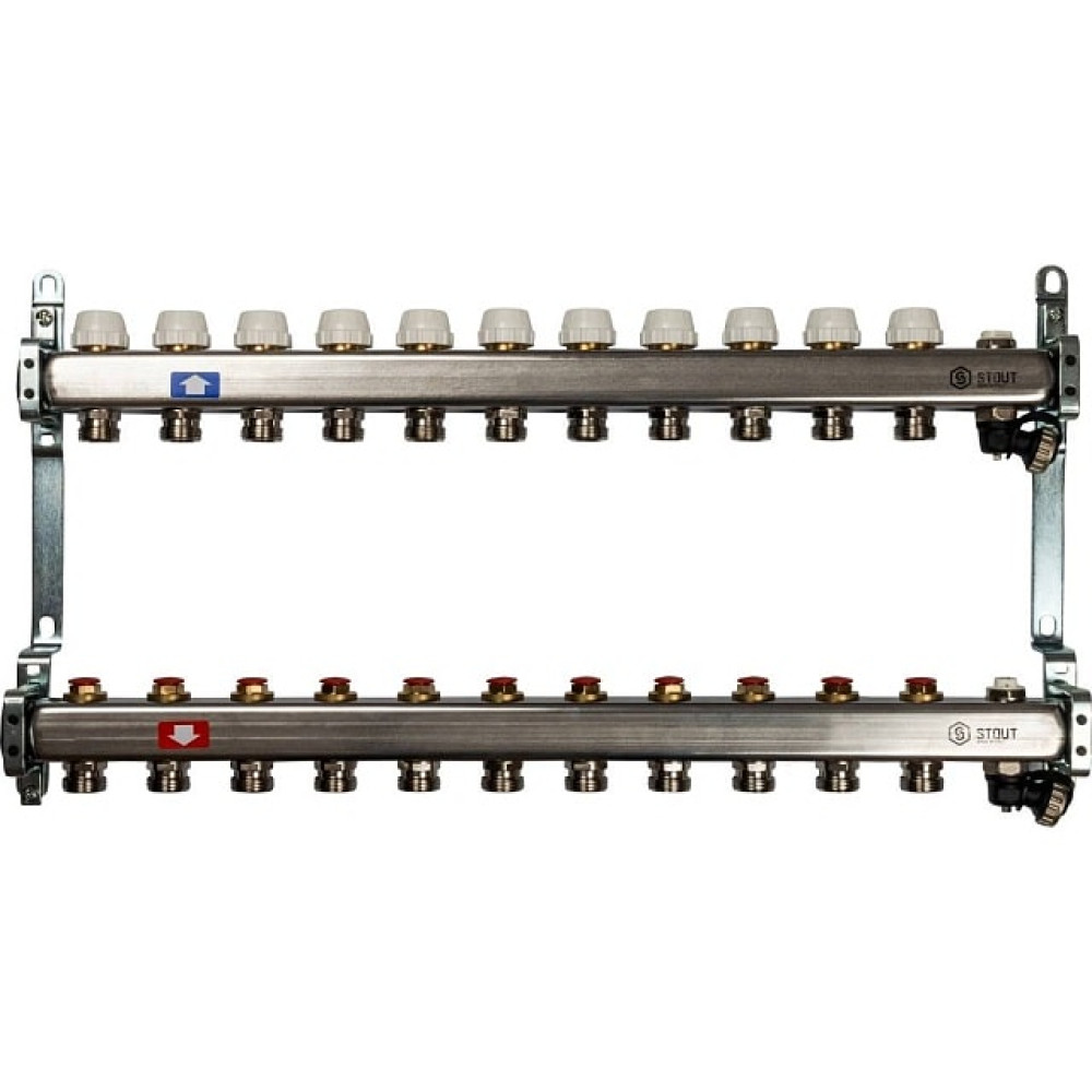 Коллектор из нержавеющей стали без расходомеров, с клапаном вып. воздуха и сливом 11 вых Stout SMS-0932-000011
