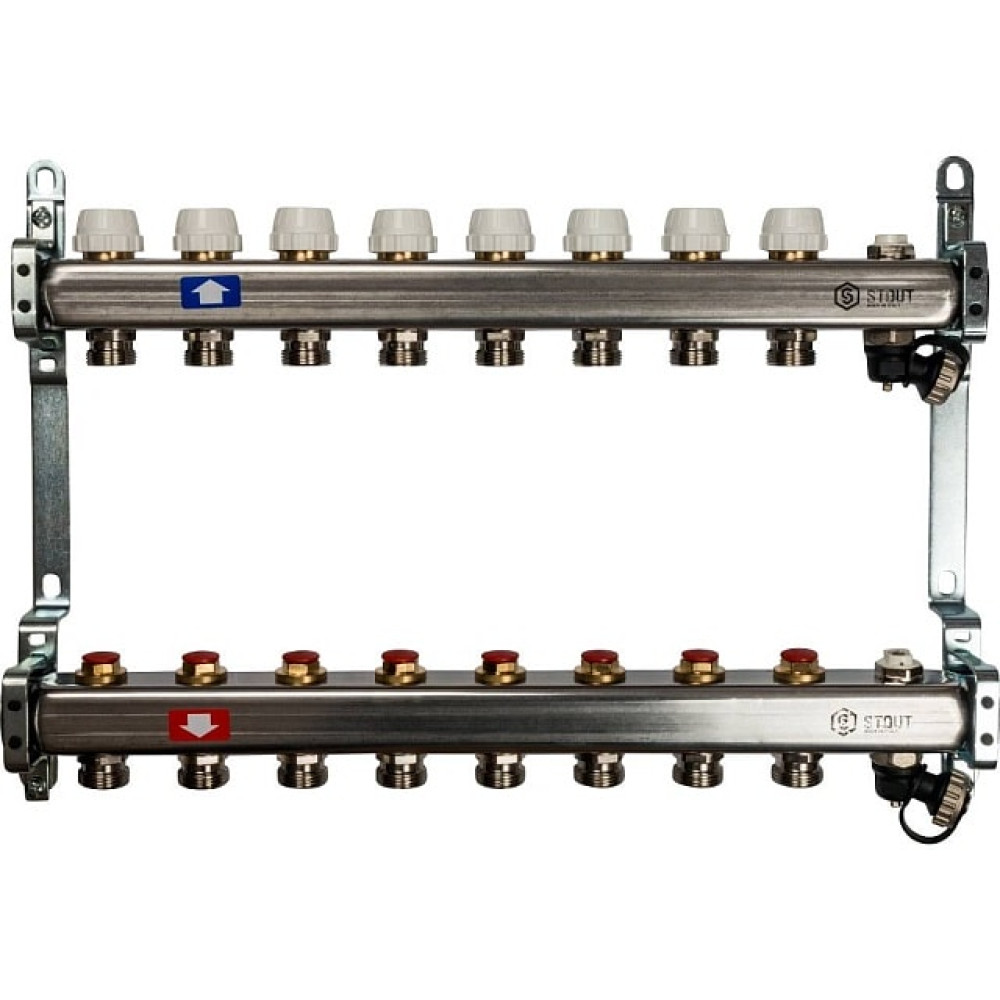 Коллектор из нержавеющей стали без расходомеров, с клапаном вып. воздуха и сливом 8 вых Stout SMS-0932-000008