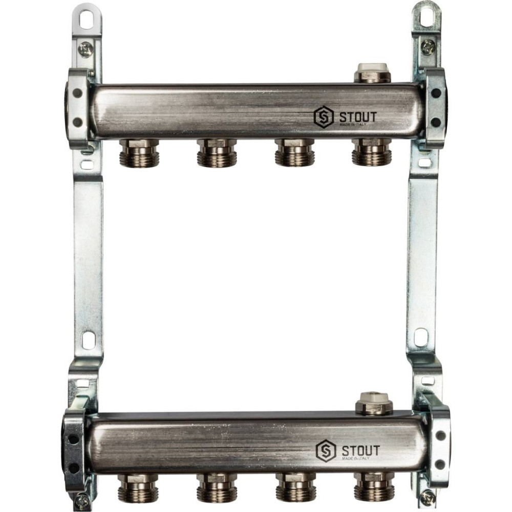 Коллектор из нержавеющей стали для радиаторной разводки на 4 выхода Stout