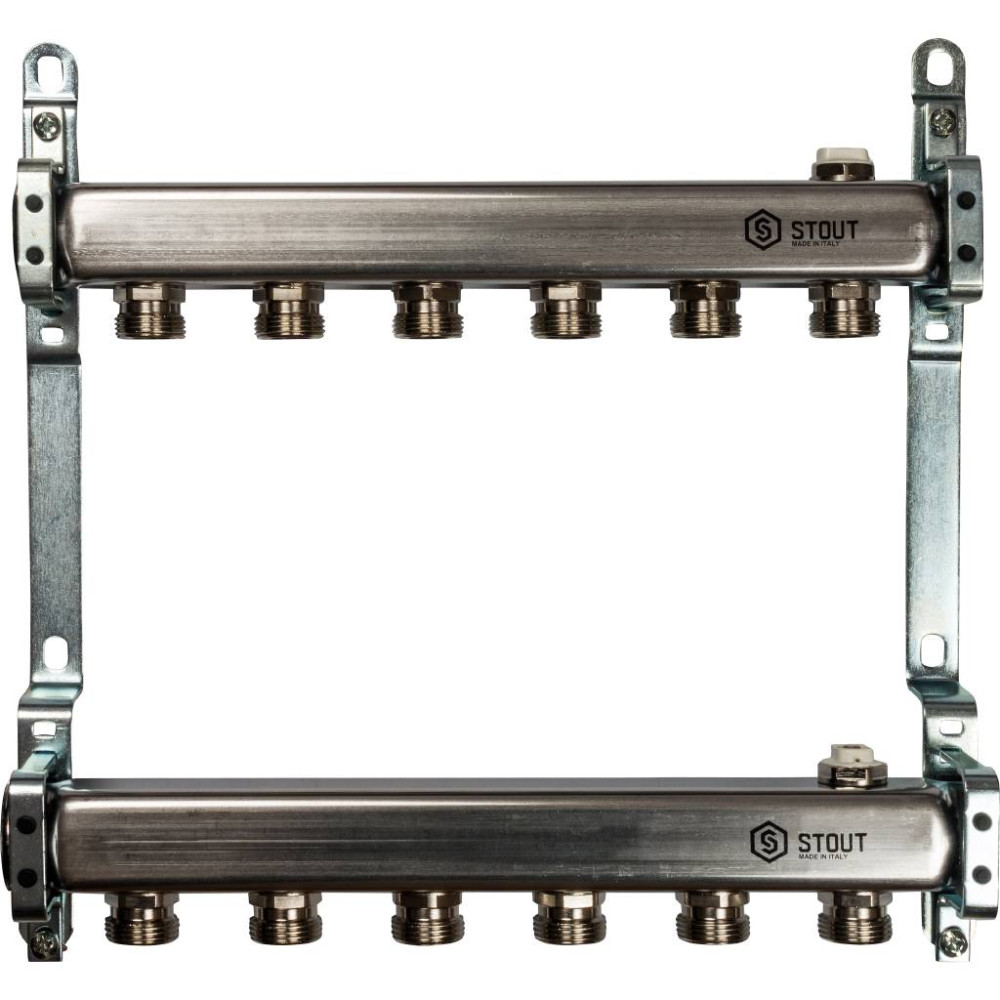 Коллектор из нержавеющей стали для радиаторной разводки на 6 выходов Stout