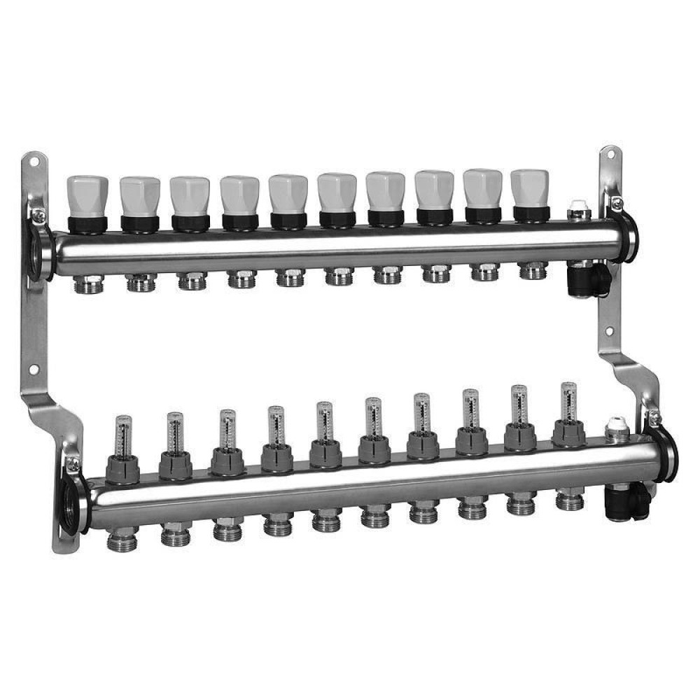 Распределительные коллекторы укомплектованные расходомерами для отопительных систем предназначены для транспортировки и распределения теплоносителя по разным контурам напольного отопления.