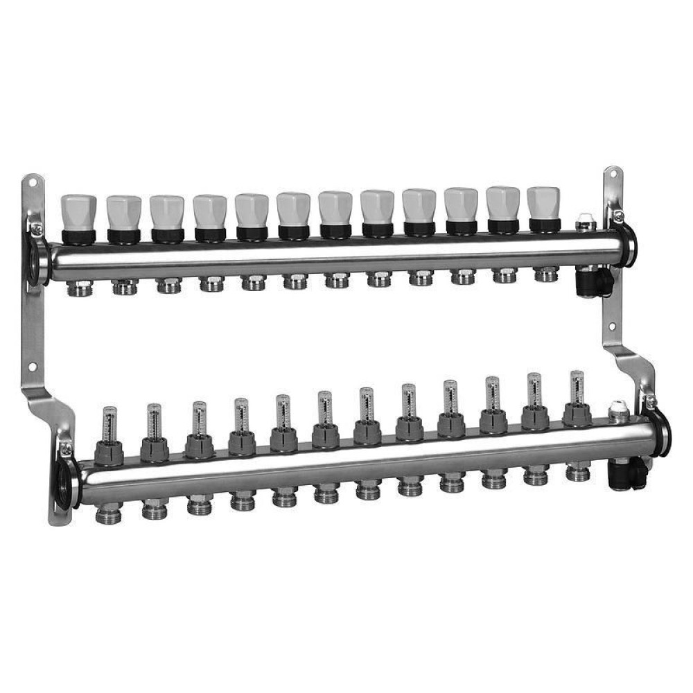 Распределительные коллекторы укомплектованные расходомерами для отопительных систем предназначены для транспортировки и распределения теплоносителя по разным контурам напольного отопления.