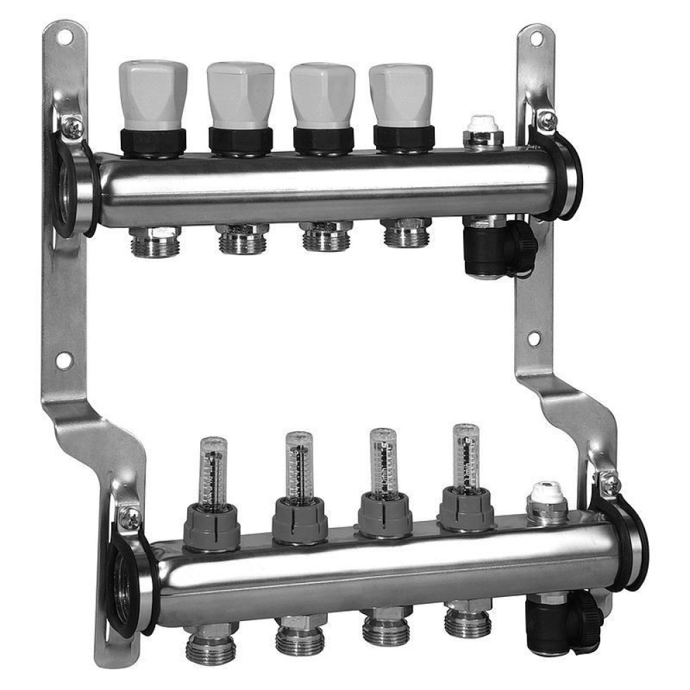 Распределительные коллекторы укомплектованные расходомерами для отопительных систем предназначены для транспортировки и распределения теплоносителя по разным контурам напольного отопления.