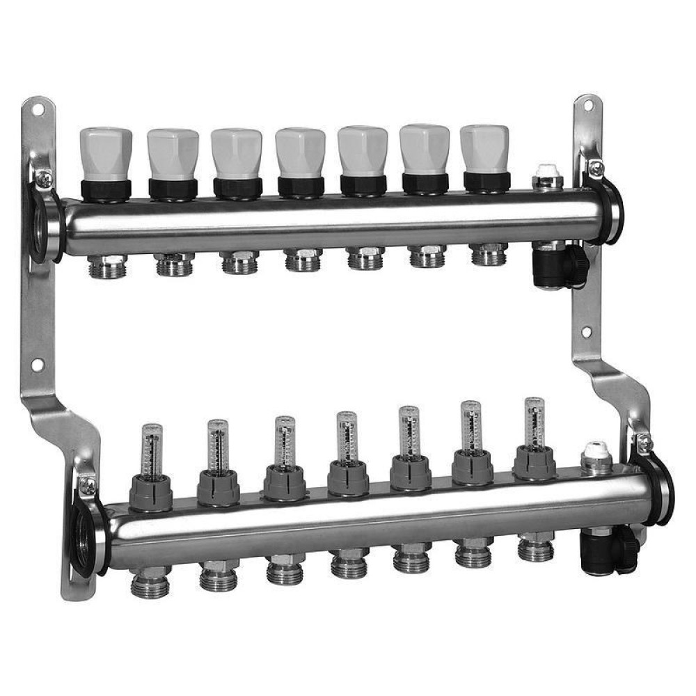 Распределительные коллекторы укомплектованные расходомерами для отопительных систем предназначены для транспортировки и распределения теплоносителя по разным контурам напольного отопления.