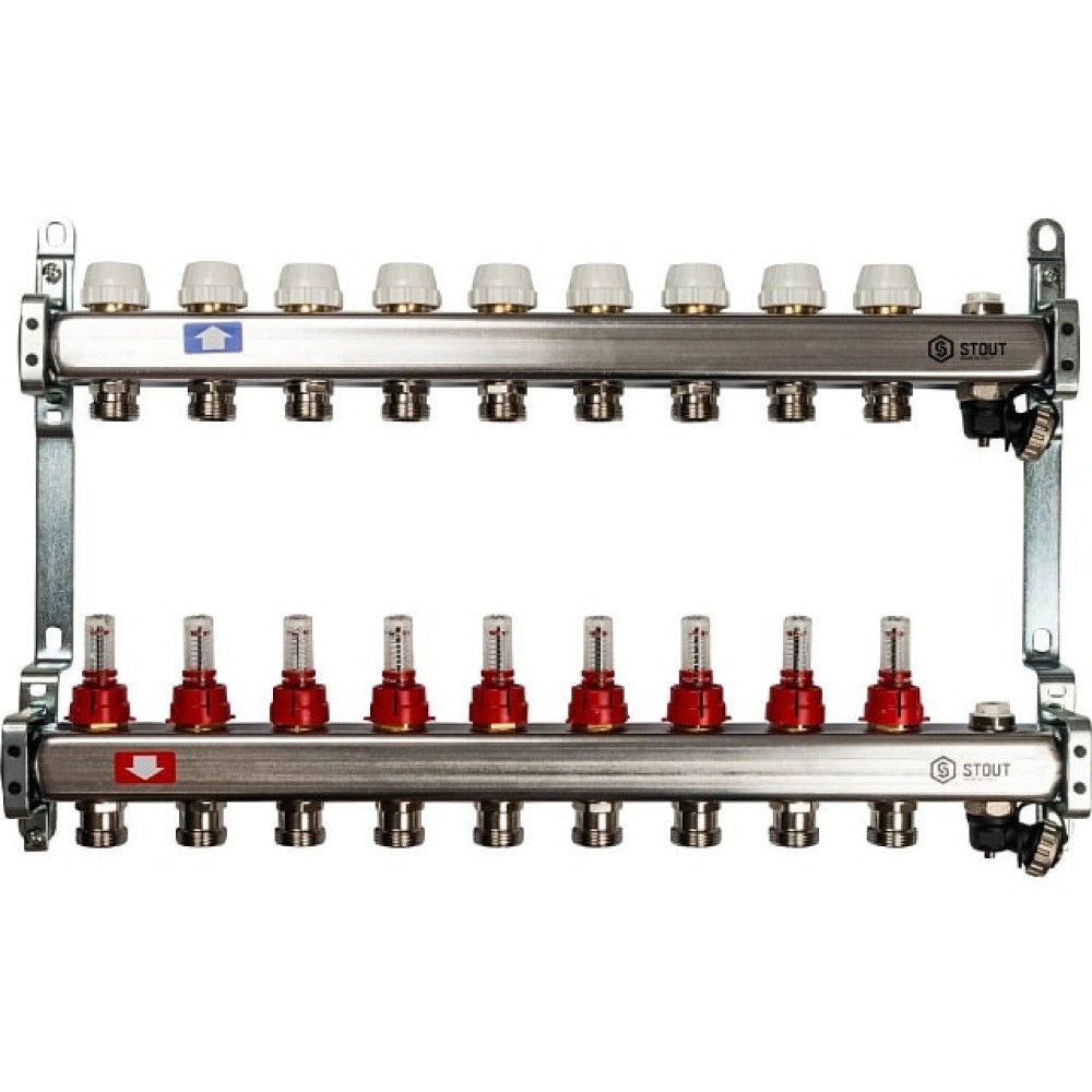 Коллектор из нержавеющей стали с расходомерами, с клапаном вып. воздуха и сливом 9 вых. Stout SMS-0927-000009
