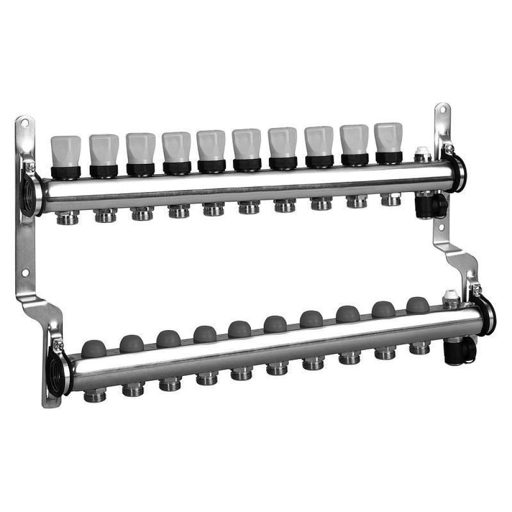 Распределительные коллекторы для отопительных систем предназначены для транспортировки и распределения теплоносителя по разным контурам напольного отопления.
