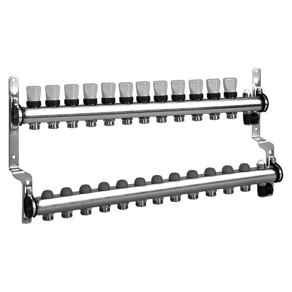 Распределительные коллекторы для отопительных систем предназначены для транспортировки и распределения теплоносителя по разным контурам напольного отопления.