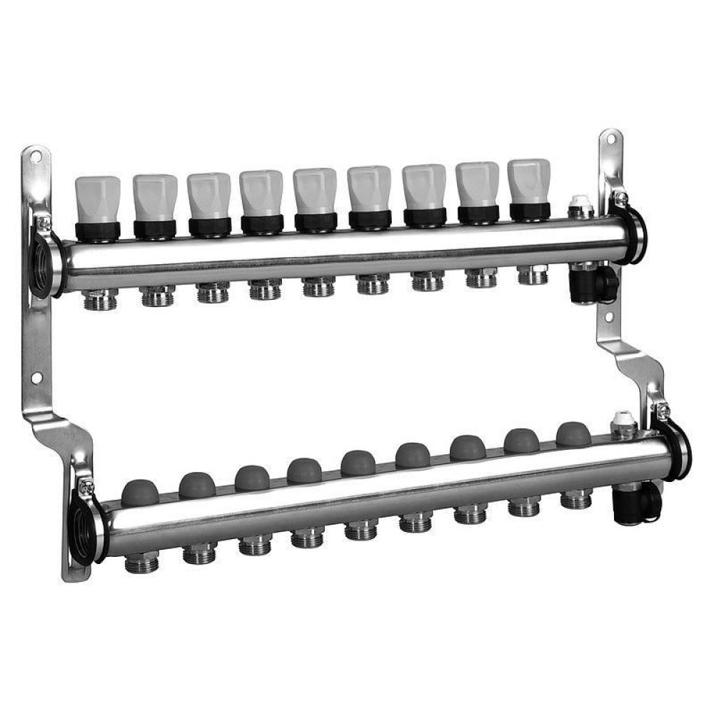 Распределительные коллекторы для отопительных систем предназначены для транспортировки и распределения теплоносителя по разным контурам напольного отопления.