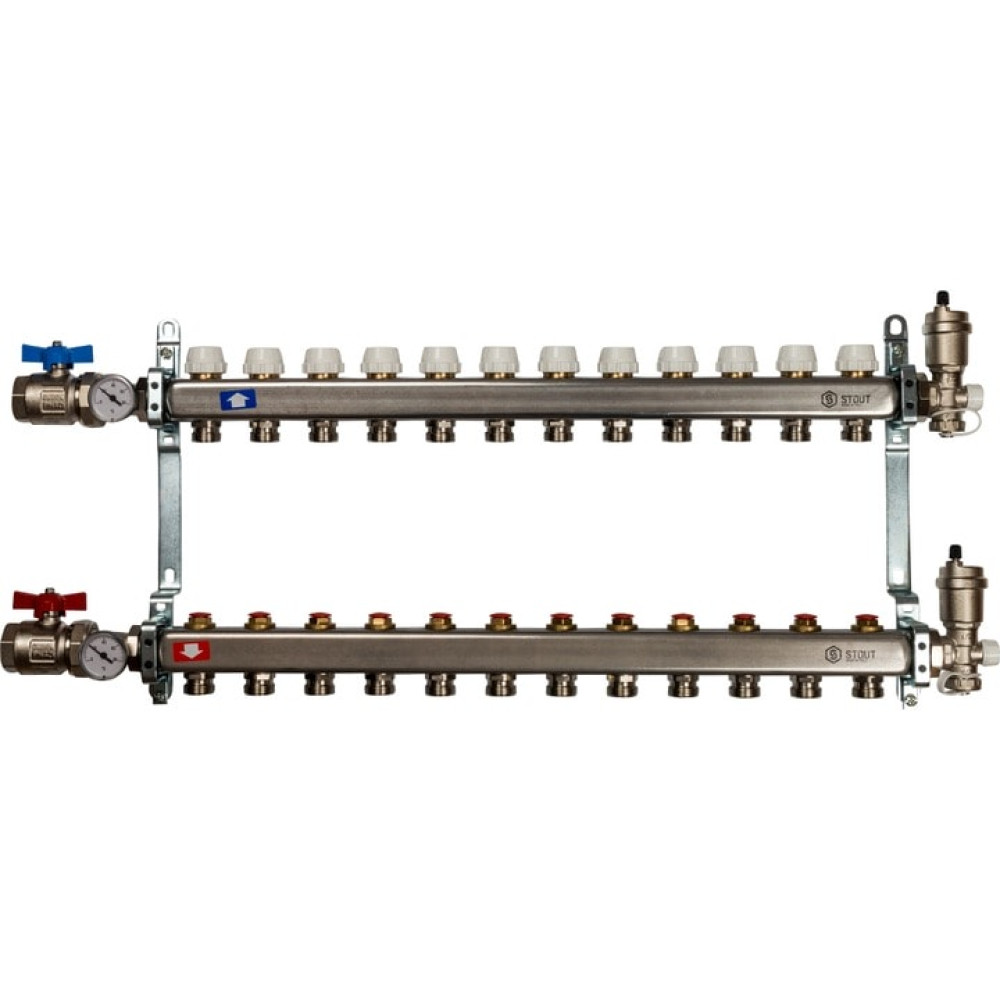 Коллектор из нержавеющей стали в сборе без расходомеров на 12 выходов Stout SMS 0912 000012