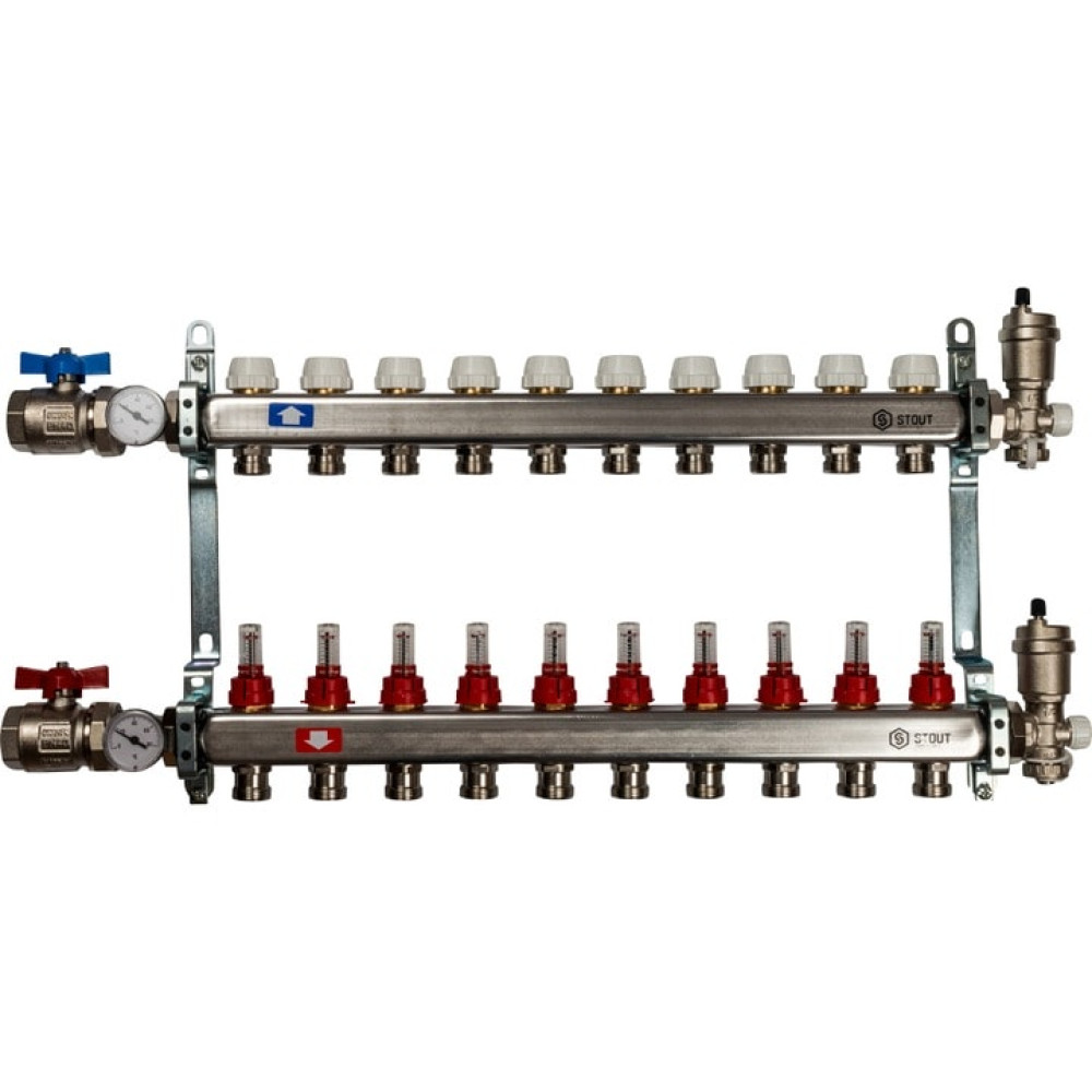 Коллектор из нержавеющей стали в сборе с расходомерами на 10 выходов Stout SMS 0907 000010