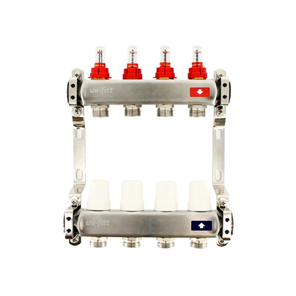 Коллектор из нержавеющий стали Uni-Fitt Optimal 3/4"x1" 4 выхода с расходомерами