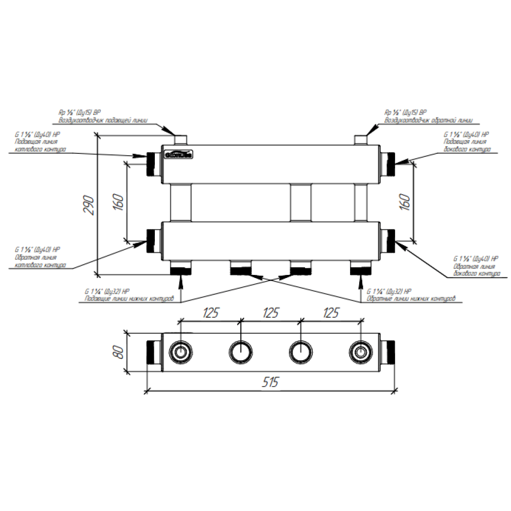 Модульный коллектор предназначен для распределения теплоносителя по контурам или его сбора в каскад для вывода на гидрострелку.