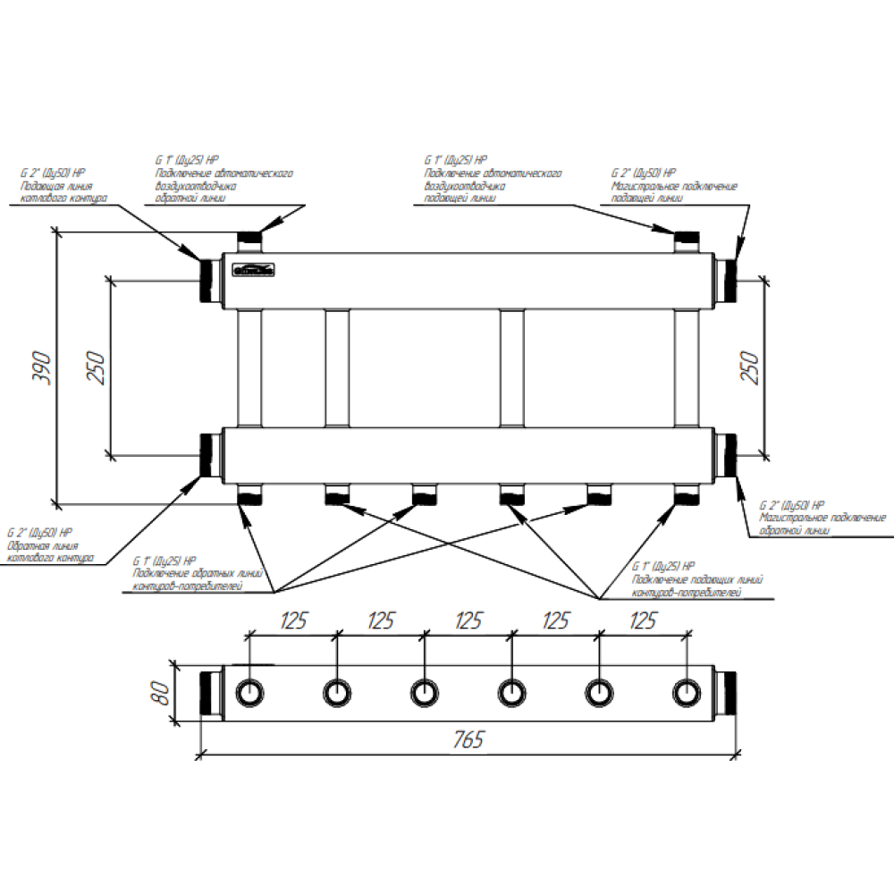 Коллектор модульный Gidruss MK-250-3х25 до 250 кВт 2" 3 контура