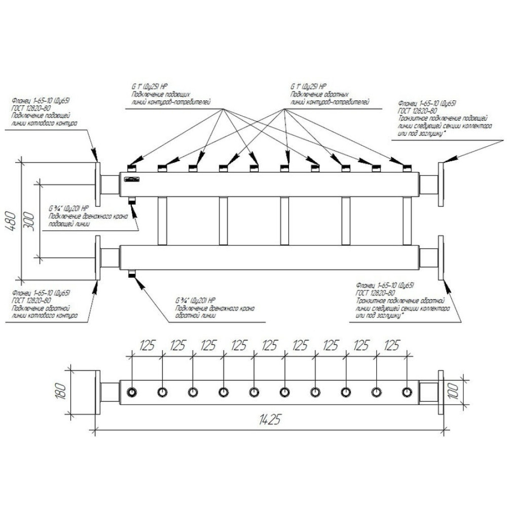 Коллектор модульный Gidruss MK-400-5х25 до 400 кВт ДУ 65 5 контуров