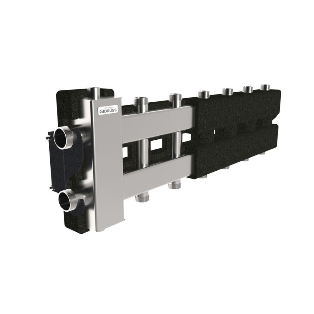 Коллектор нержавеющий Gidruss BMSS-80-7DU EPP до 80 кВт 1 1/4"-1" 7 контуров EPP термоизоляция