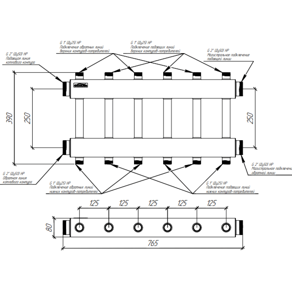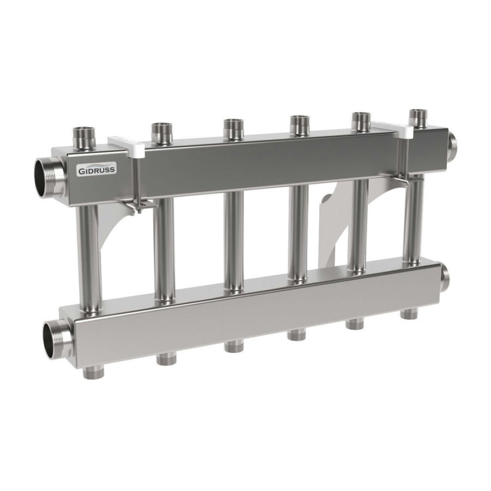 Коллектор нержавеющий модульный Gidruss MKSS-250-6DU до 250 кВт 2" 6 контуров