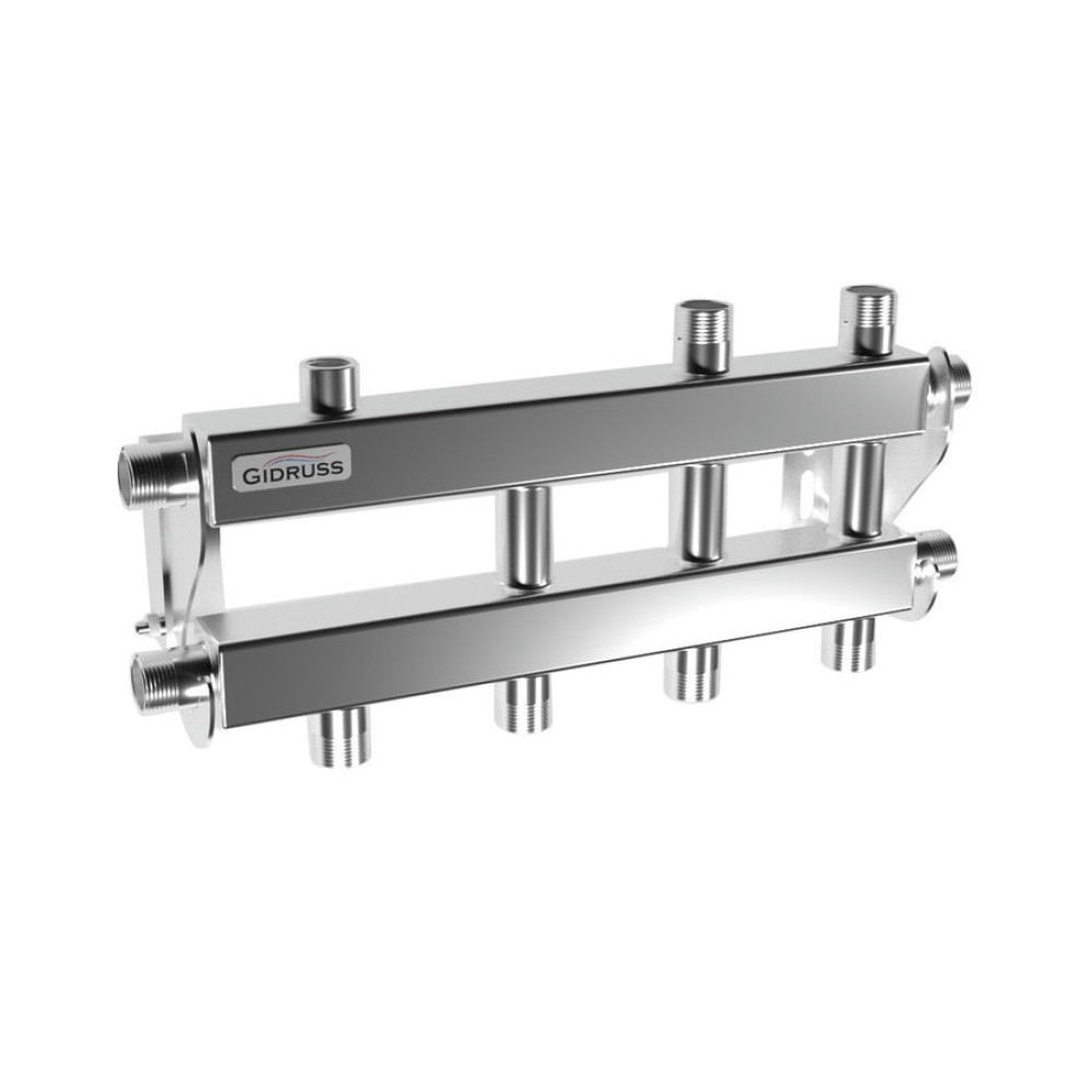 Коллектор нержавеющий модульный Gidruss MKSS-40-4DU до 40 кВт 3/4" 4 контура