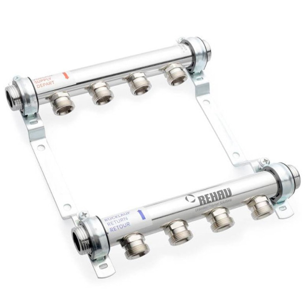 Коллектор Rehau HLV 2 контура для систем радиаторного отопления изготовлен из нержавеющей стали и предназначен для систем 2-контурного радиаторного отопления. Снабжён вентильными регулировочными вставками. Возможно подключение с обеих сторон. Трубы смонтированы на звукоизолирующих оцинкованных кронштейнах.