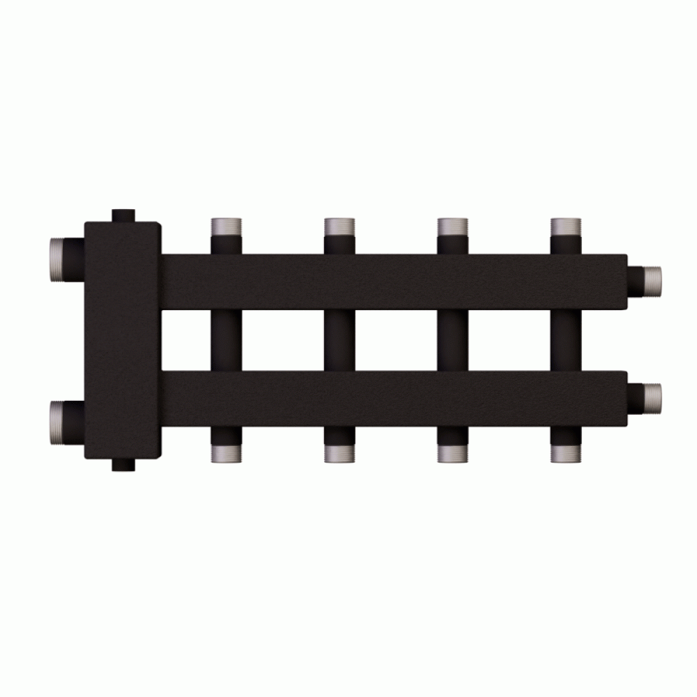 Коллектор с гидроразделителем Warme WKD.R.122.К.2+2+1 Дублер компакт (черная сталь) на 5 контуров до 122 кВт
