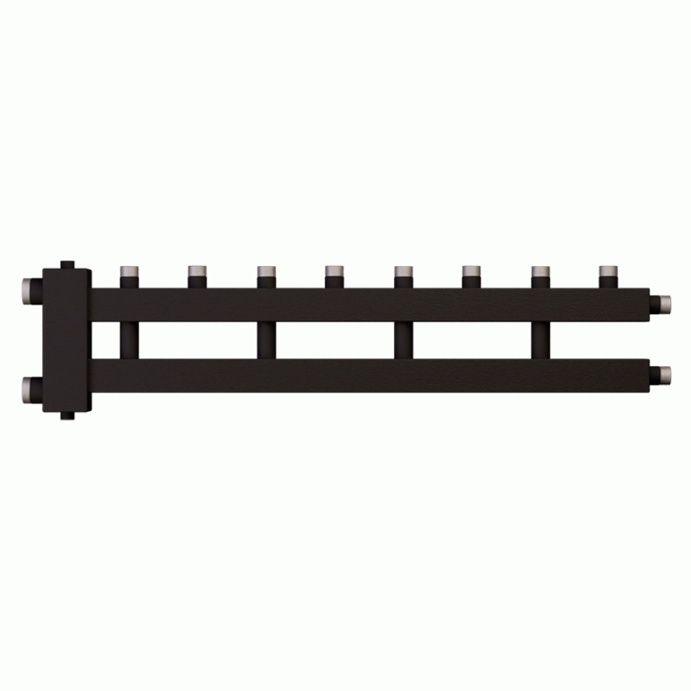 Распределительный коллектор для котла от производителя Warme состоит из двух камер подающей и обратной линий теплоносителя. Внешний вид распределительного коллектора состоит из части цельной нержавеющей профильной трубы со встроенной внутренней второй камерой, металл коллектора отшлифован, что придает эстетичный вид коллектору и не требует закрывать коллектор для котла в изоляцию или защитный кожух.