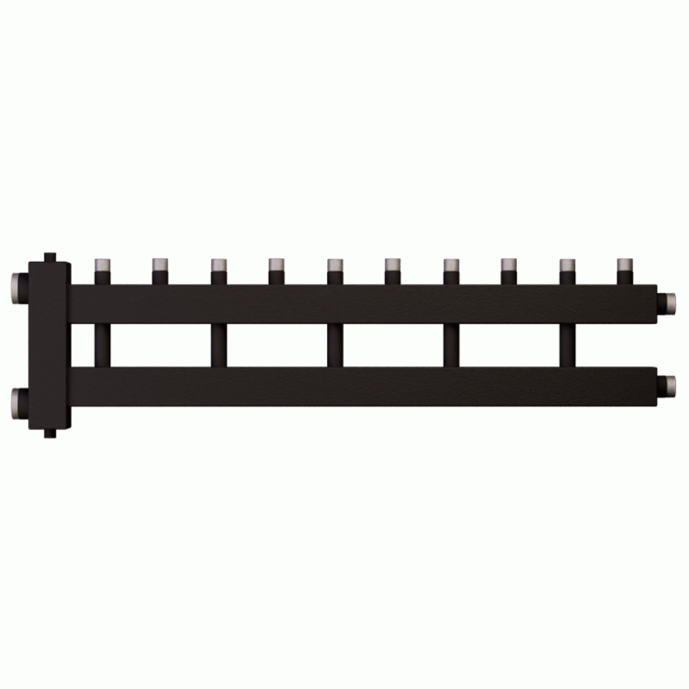 Распределительный коллектор для котла от производителя Warme состоит из двух камер подающей и обратной линий теплоносителя. Внешний вид распределительного коллектора состоит из части цельной нержавеющей профильной трубы со встроенной внутренней второй камерой, металл коллектора отшлифован, что придает эстетичный вид коллектору и не требует закрывать коллектор для котла в изоляцию или защитный кожух.