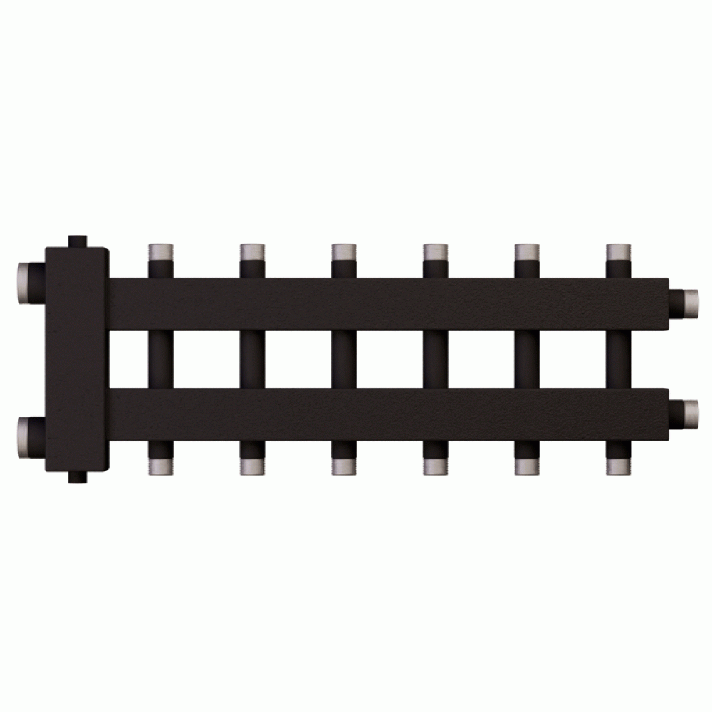 Коллектор с гидроразделителем Warme WKD.R.85.К.3+3+1 (черная сталь) Дублер компакт на 7 контуров до 85 кВт