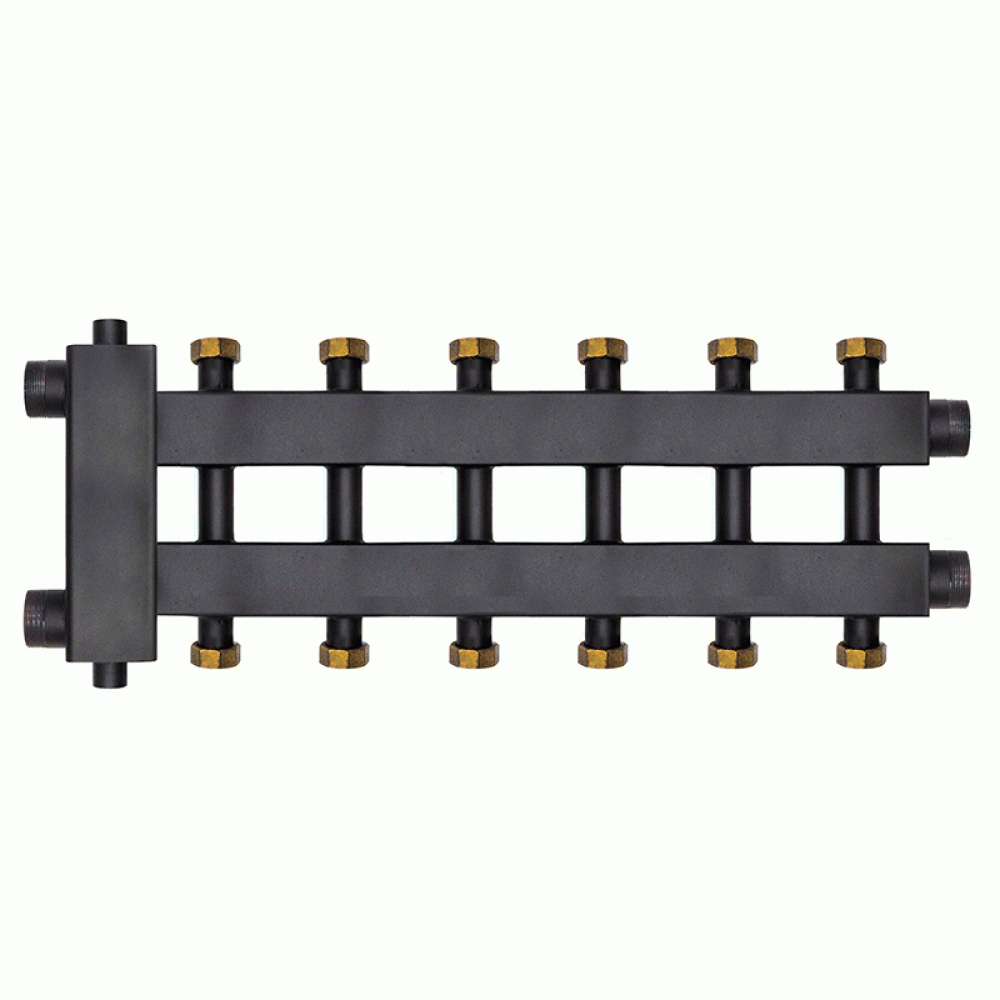 Коллектор с гидроразделителем Warme WKD.R.85.К.F.3+3+1 (Дублер компакт) черная сталь на 7 контуров до 85 кВт с накидными гайками