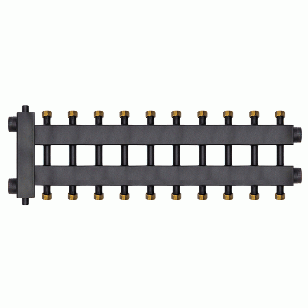 Коллектор с гидроразделителем Warme WKD.R.85.К.F.5+5+1 (Дублер компакт) черная сталь на 11 контуров до 85 кВт с накидными гайками