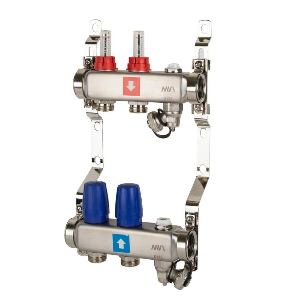 Коллектор с расходомерами дренажным краном и воздухоотводчиком MVI 1"х3/4"ЕК 2 выхода
