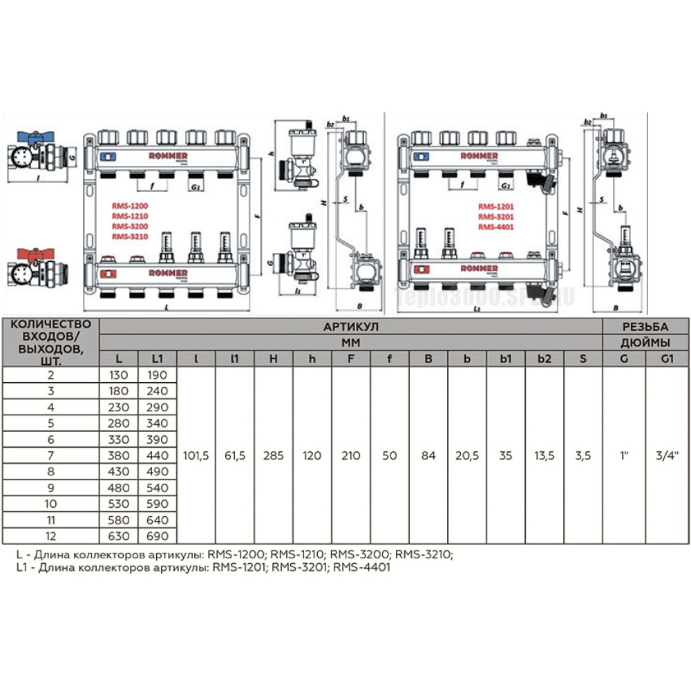 Коллекторы Rommer укомплектованы шаровыми кранами для отключения от системы отопления, а также спускными кранами автоматическими воздушными клапанами, устанавливаемыми в конце каждого коллектора.