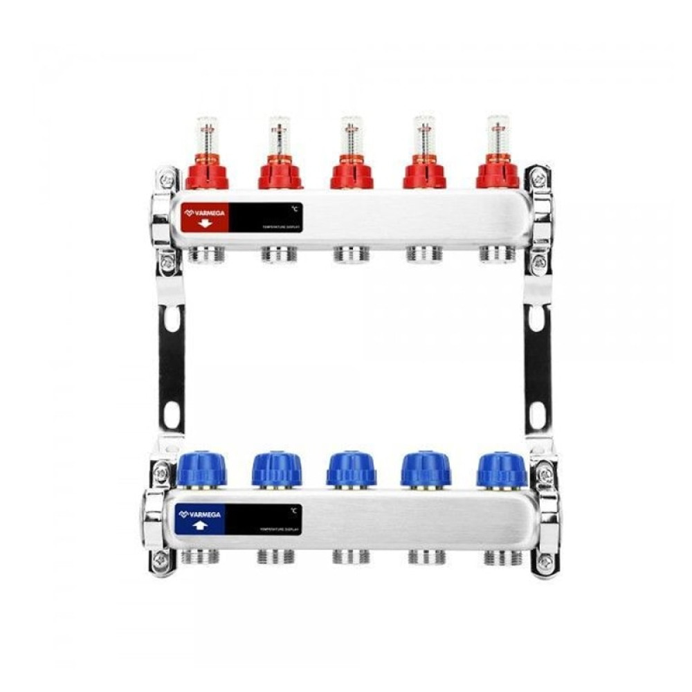 Коллекторные группы предварительной сборки из нержавеющей стали с расходомерами марки Varmega предназначены для распределения и регулирования потоков теплоносителя в низкотемпературных системах отопления (напольное отопление). Оснащены расходомерами на подающем коллекторе и термостатическими вентилями с размером M30x1,5 (с возможностью установки термоэлектрических приводов) на обратном коллекторе. Каждый коллектор подвергается в заводских условиях проверке на функционирование и герметичность уплотнений.