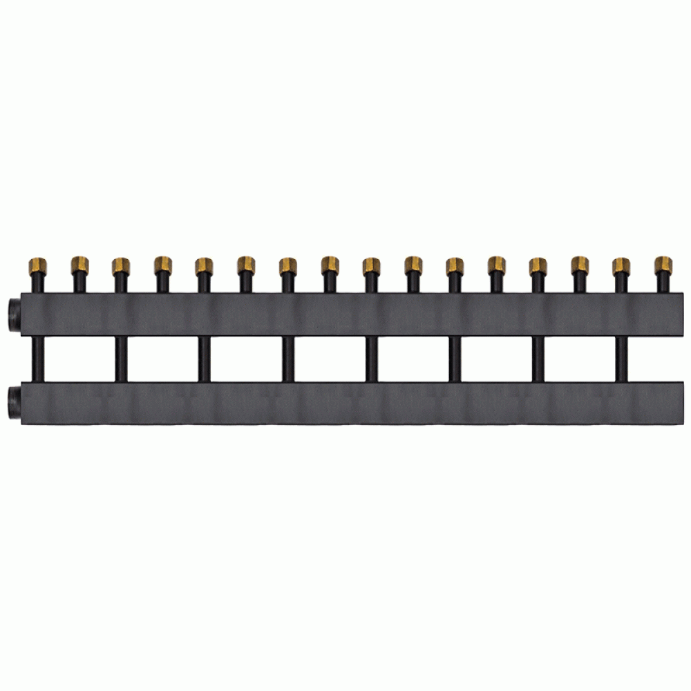 Коллектор Warme WKD.140.F.8 (черная сталь) Дублер рядный на 8 контуров 90-140 кВт с накидными гайками