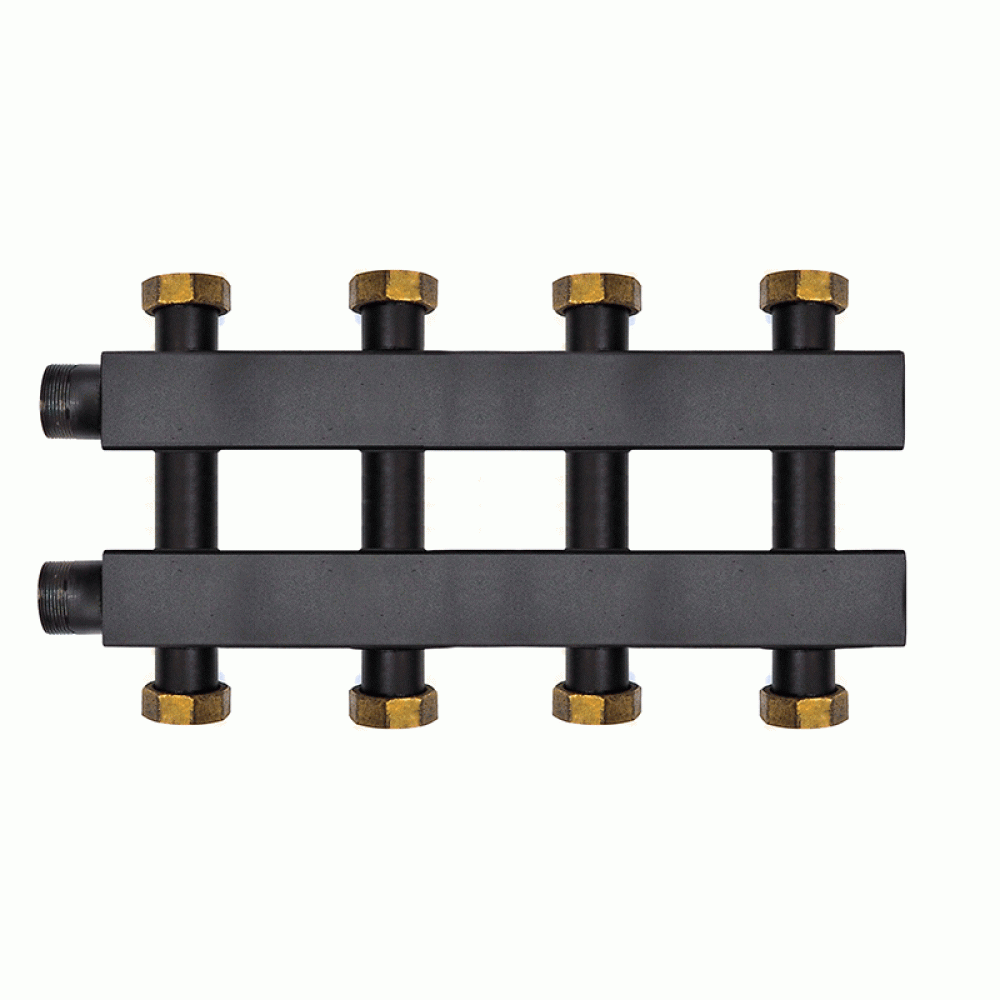 Коллектор Warme WKD.140.К.F.2+2 Дублер компакт (черная сталь) на 4 контура 90-140 кВт с накидными гайками