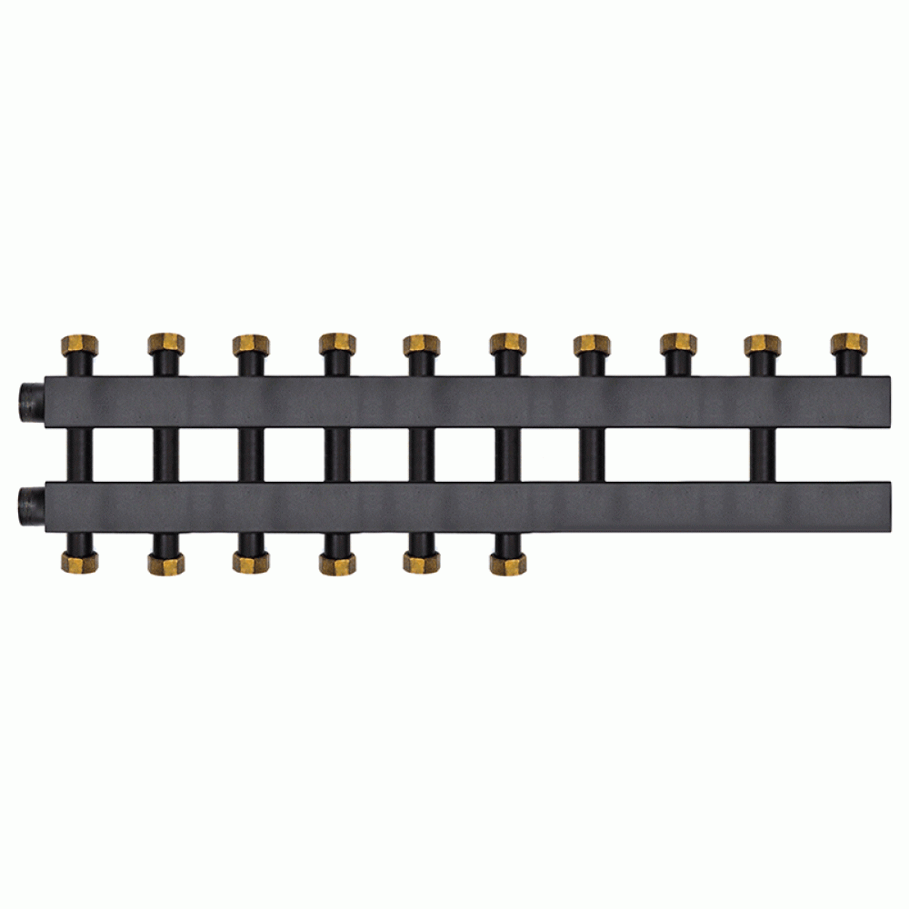 Коллектор Warme WKD.140.К.F.5+3 Дублер компакт (черная сталь) на 8 контуров 90-140 кВт с накидными гайками