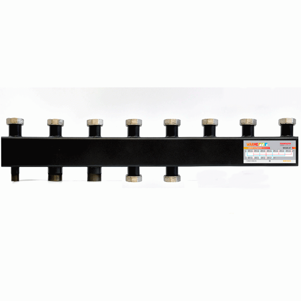 Коллектор Warme WKS85.41F (черная сталь) на 5 контуров до 85 кВт с накидными гайками 1 1/2"