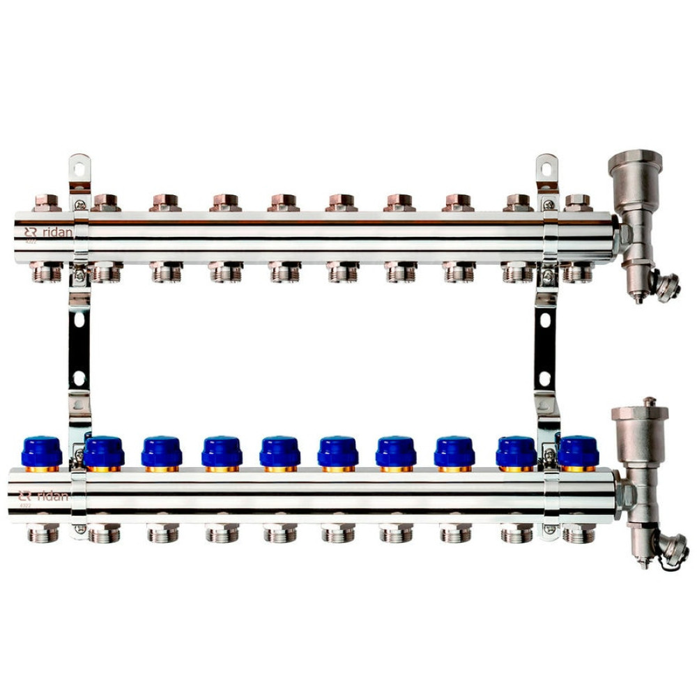 Коллекторная группа FHF-R, на 10 выходов, с воздухоотводчиками, с кронштейнами, Ридан 088U0710R
